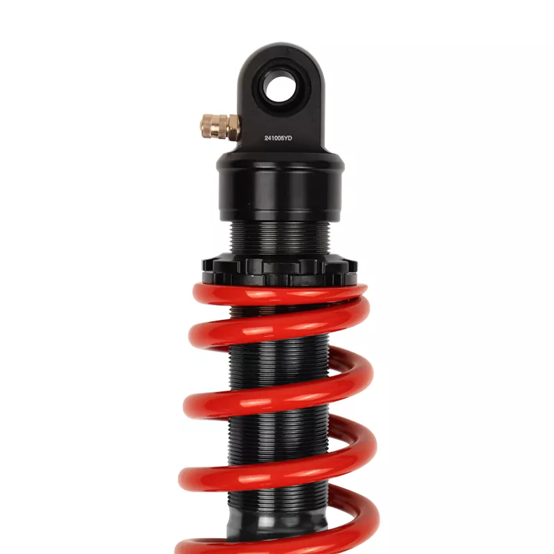झटका अवशोषकले समायोज्य वसन्त प्रीलोड सुविधा दिन्छ, राइडरहरूलाई परिमार्जन गर्न सक्षम पार्छ, वसन्तलाई कडा बनाउन तल समायोजन गर्नुहोस्, वसन्तलाई नरम बनाउन समायोजन गर्नुहोस्